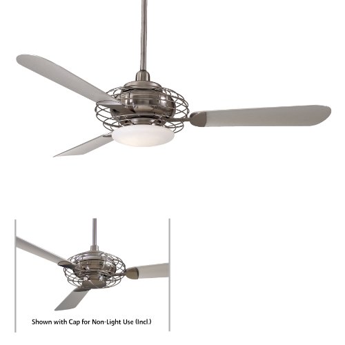 An evolution of form and function merging today's technology with retro styling. This fan comes with an integrated light kit with halogen bulb. A cap is provided so the fan can be used without the downlight. Features: 14 degrees Blade Pitch 52" 3-Blades (Concave Style) 3 1/2" and 6" Downrods (Uses 3/4" I.D. DR5 Series Downrod) Unique Wire Form Design Full Function Wall Control System Integrated Halogen Light Uses 1-100W Mini-Can Halogen Bulb (Included) Cap for Non-Light Use (Included) Models: F601-BS/BN , F601-BS/MG , F601-ORB